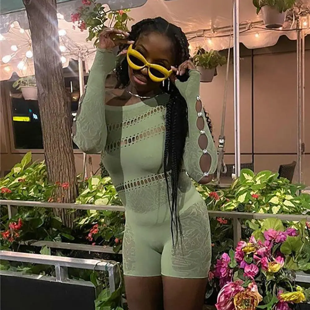 Chic Ladies Romper Single Shoulder Streetwear Temperament Slim Fit Jacquard Romper Playsuit
