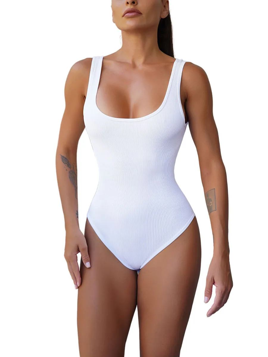 Women s Elegant V-Neck Sleeveless Bodysuit with Open Back Slimming Seamless Skinny Tank Top Thong Bodysuit
