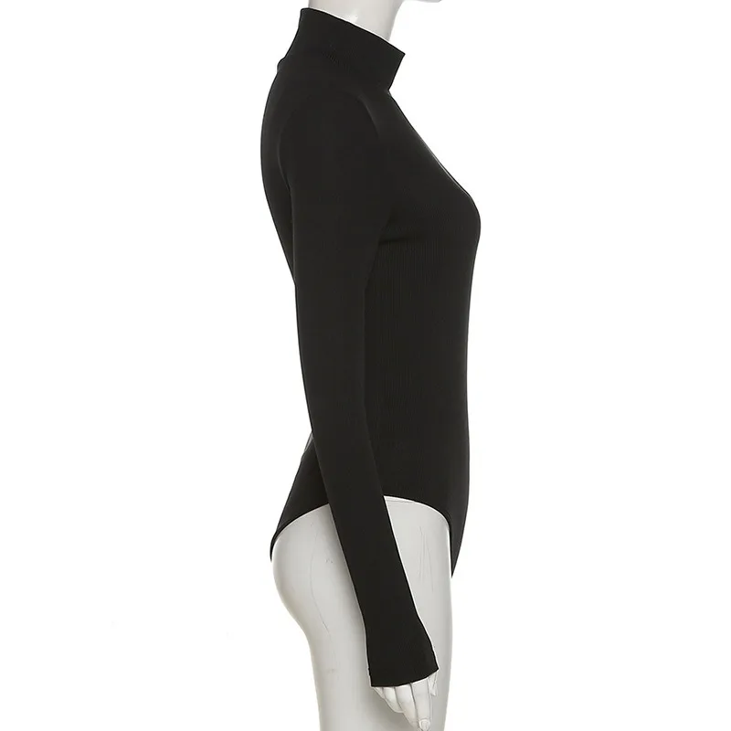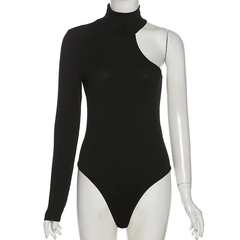 2024 Autumn Playsuits for Women New Women's Fashion One Shoulder Long Sleeve Rompers Round Neck Slim Black Color Jumpsuit