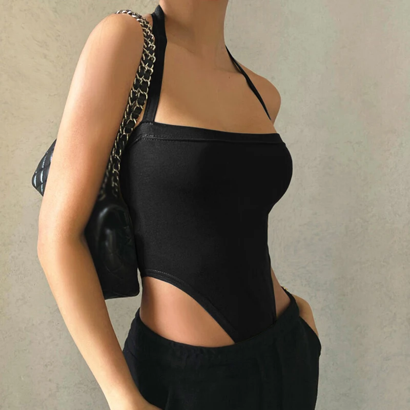 Summer Halter Bandage Jumpsuit Backless Slim Sexy Solid Colour American Style Women's Bodycon Top Sleeveless Basic
