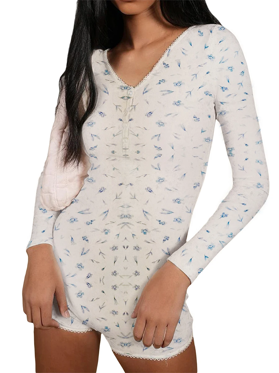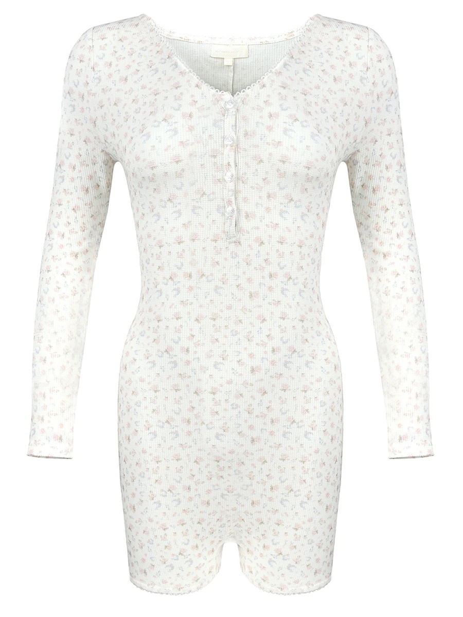 Women y2k Playsuit Grunge Fairycore Lace Trim Floral V neck Long Sleeve Shorts Jumpsuit Aesthetic Romper Streetwear