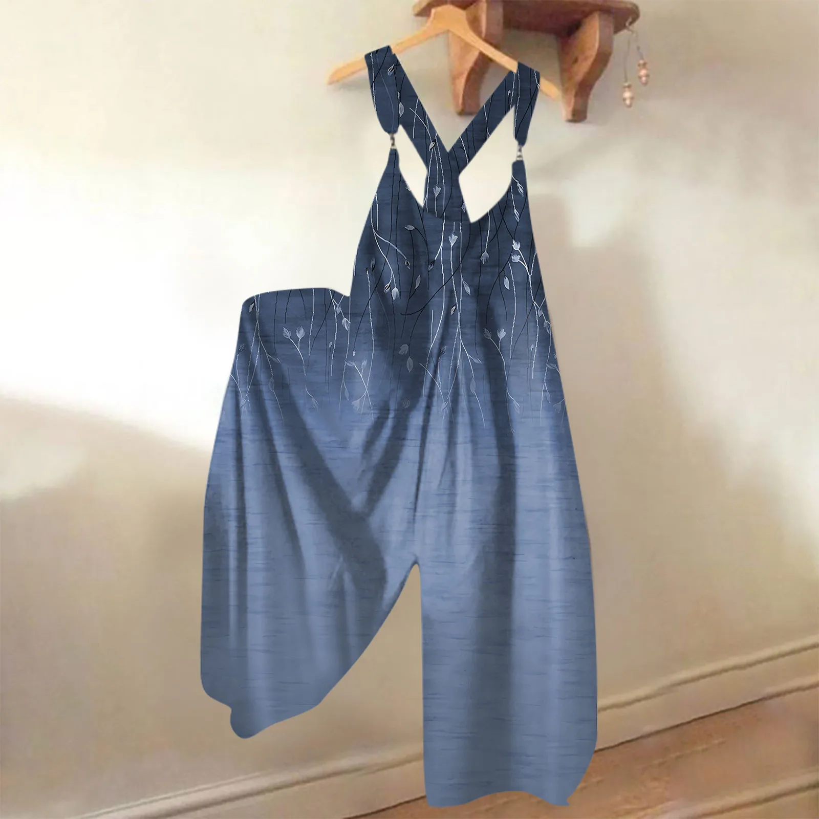 Spaghetti Strap Summer New Women Jumpsuits Sleeveless Chic Elegant Vintage Retro Floral Print Casual Office Rompers Overalls