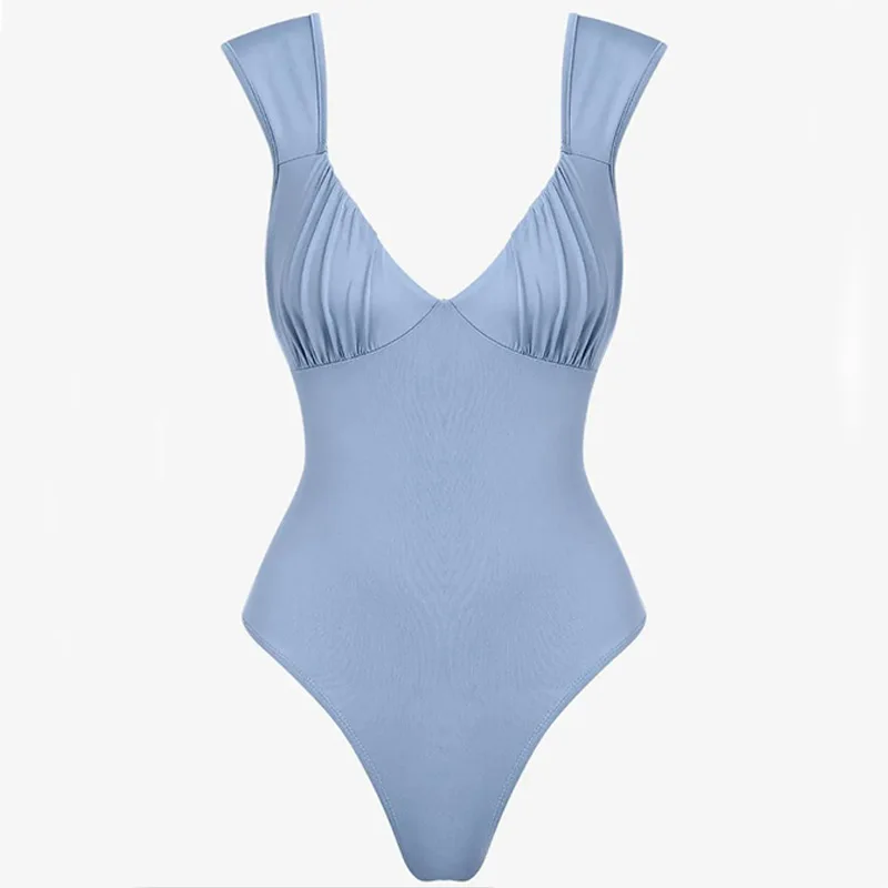 New sexy solid color pleated V-neck backless fashionable women's patchwork tight fitting short top elegant jumpsuit