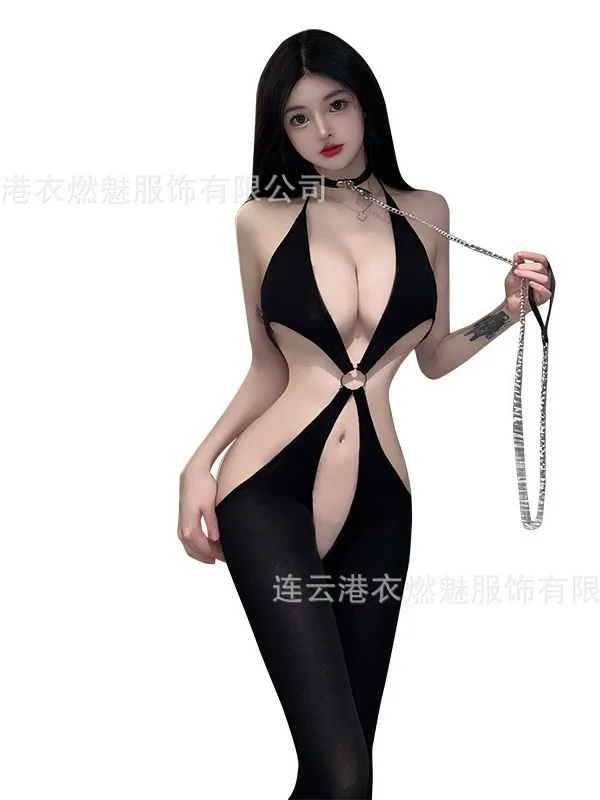 Black Sexy For Bodysuit Corset Jumpsuit Women Jumpsuits Outfits Transparent Hanging Neck Mesh Romper Sexy Hollow Out Hip W8HD