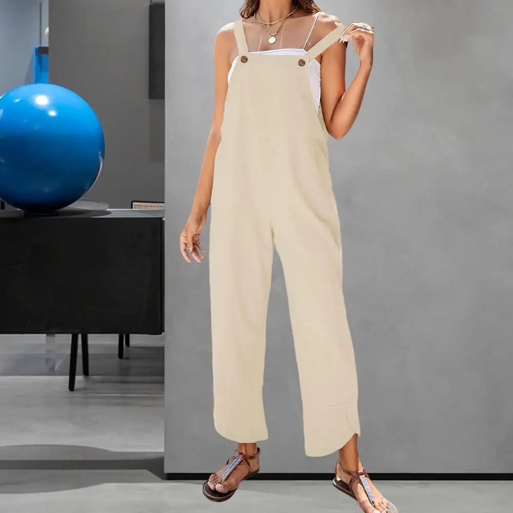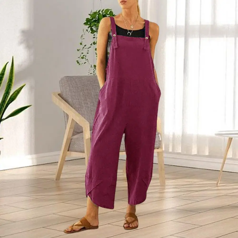 Name | Women Summer Boho Jumpsuit Overalls Solid Style Square Neck Sleeveless Casual Jumpsuit Pockets Loose Pants Jumpsuits 2024 |