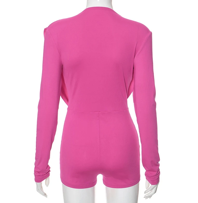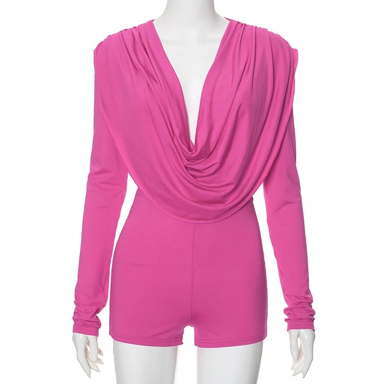 Women's Fashion Sexy jumpsuit 2024 Spring/Summer New Style with pleated collar slim fit long sleeved jumpsuit