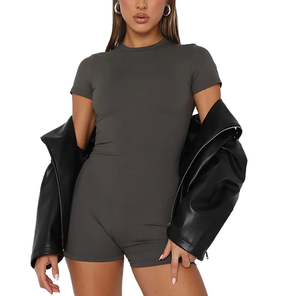 Women Yoga Jumpsuits Workout Round Neck Short Sleeve Zipper Shorts Bodysuits For Women Sport Jumpsuits