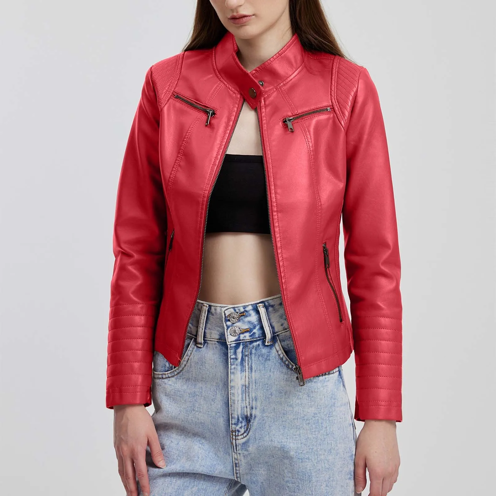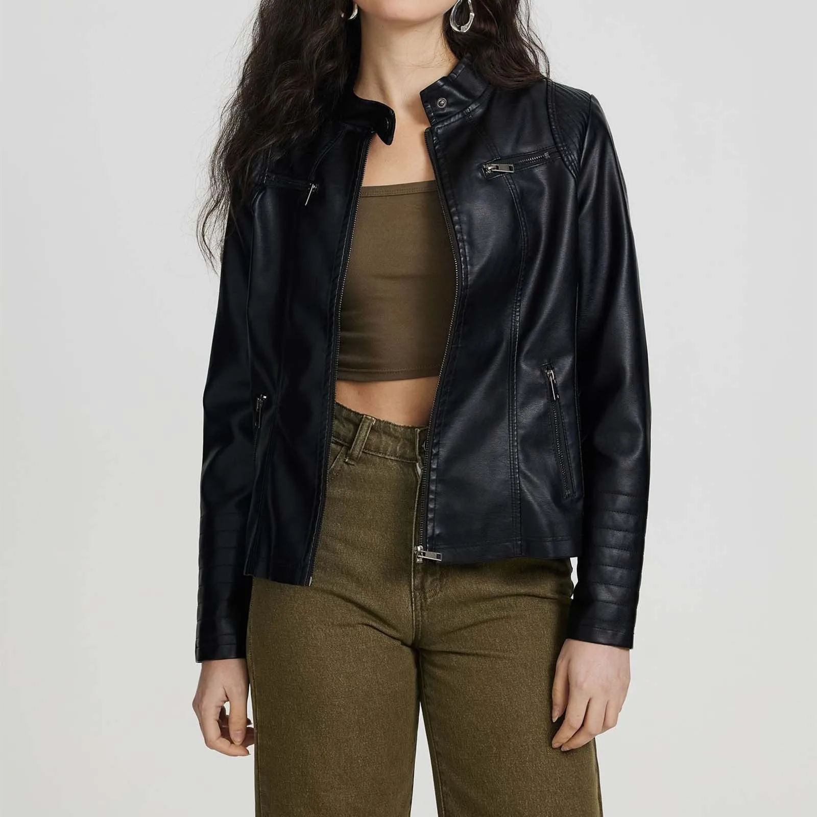 Vintage Women PU Leather Bomber Outerwears Autumn Winter Fashion Casual Zipper Windbreaker Coat Women Y2k Clothes куртка женская