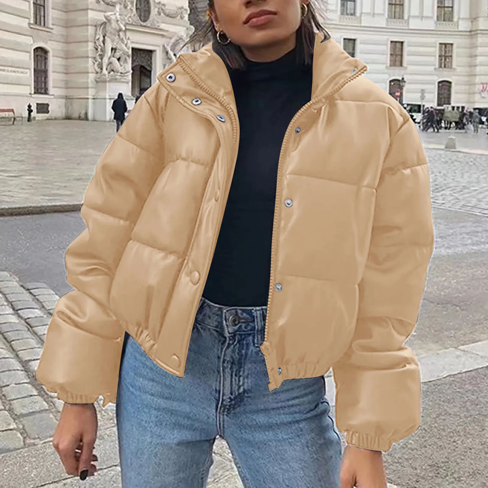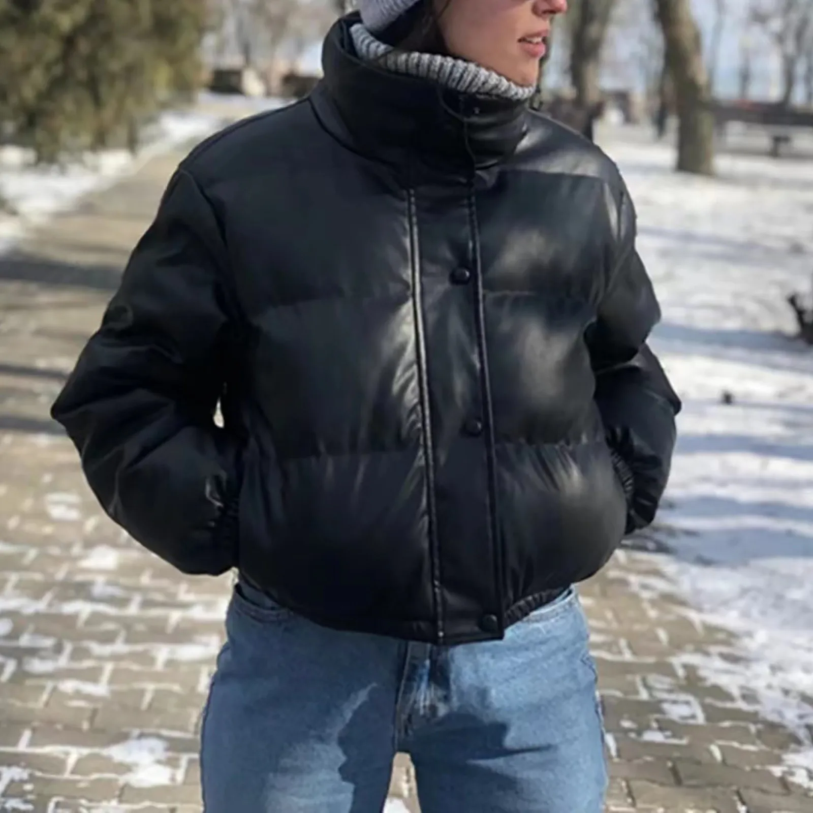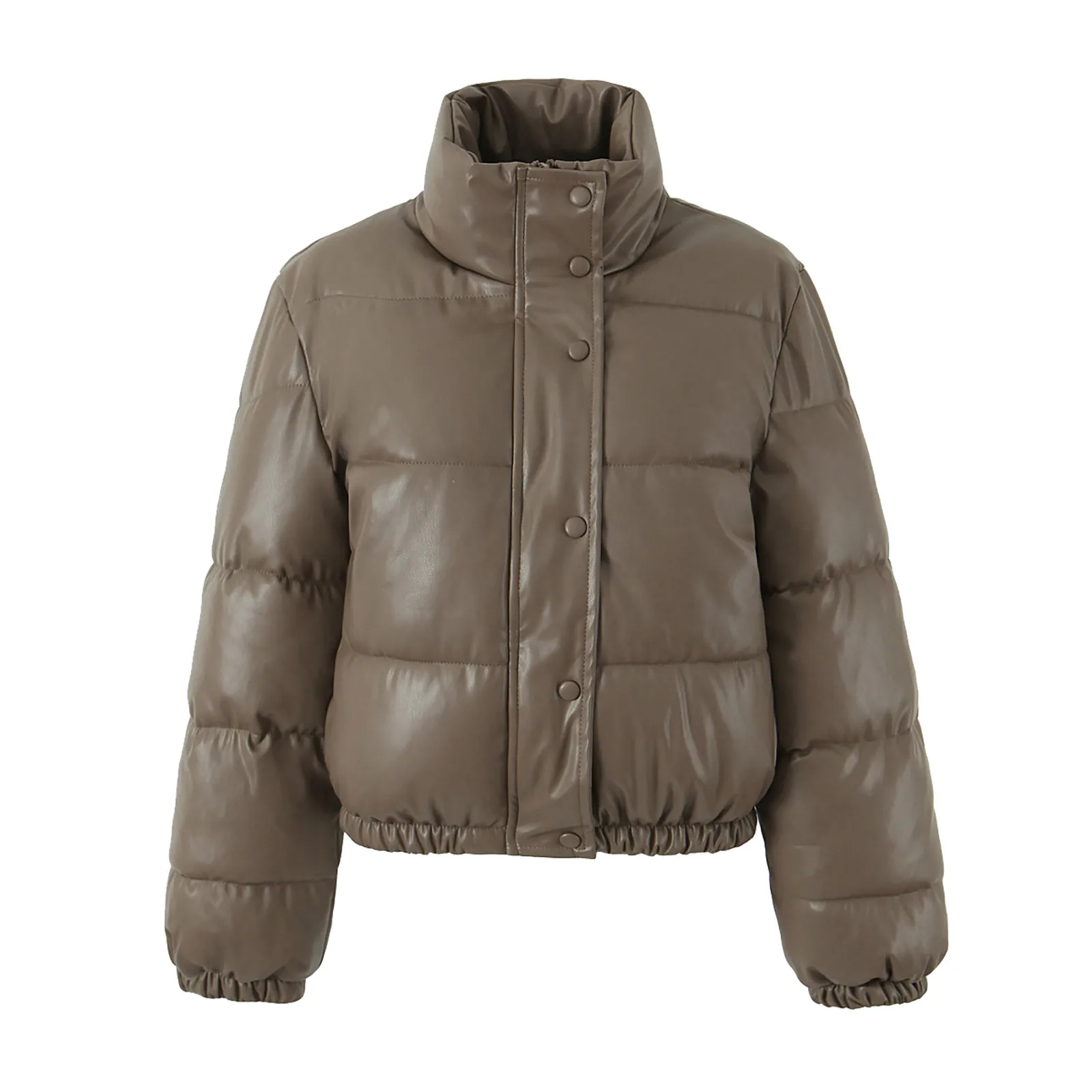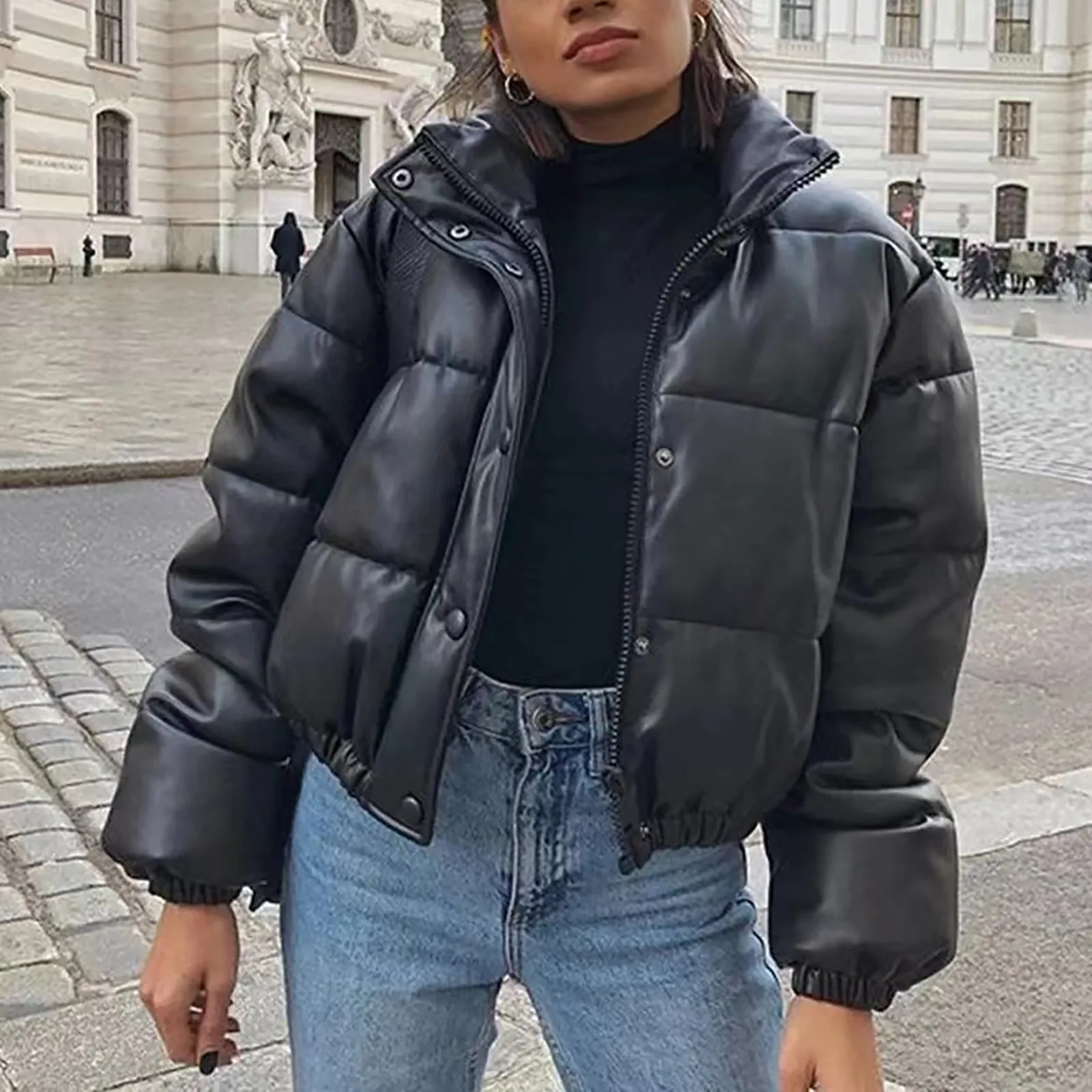 Solid Color Commute Winter Parka Coat Clothing Women Thick Warm Fashion PU Leather Outerwears 2024 New Elegant Zipper Jackets
