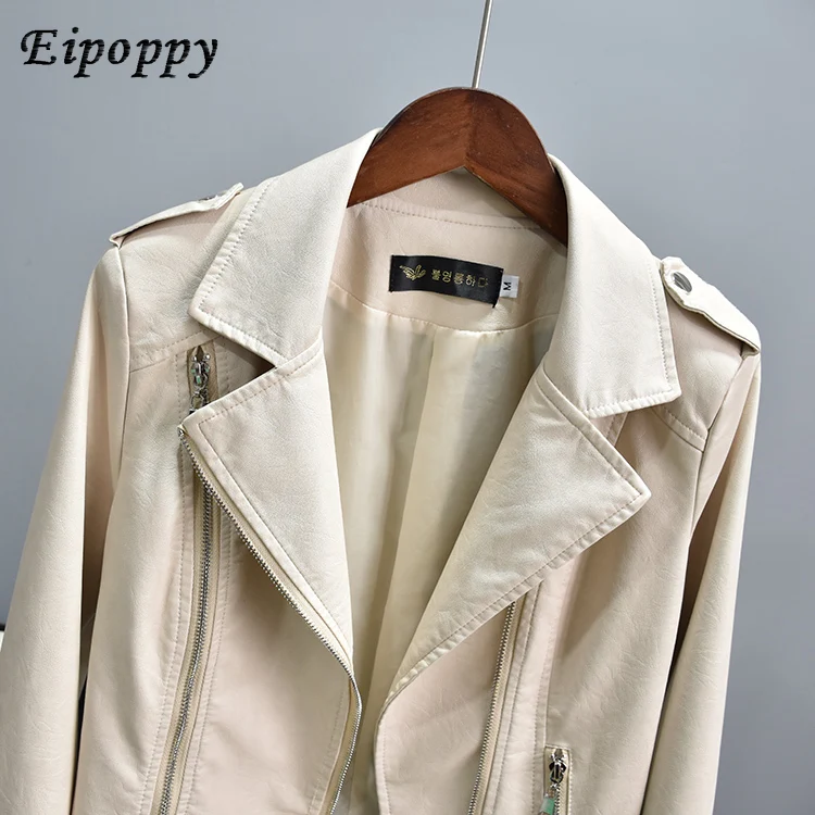 New Slim Suit Collar Zipper Biker's Leather Jacket Women's Small Coat