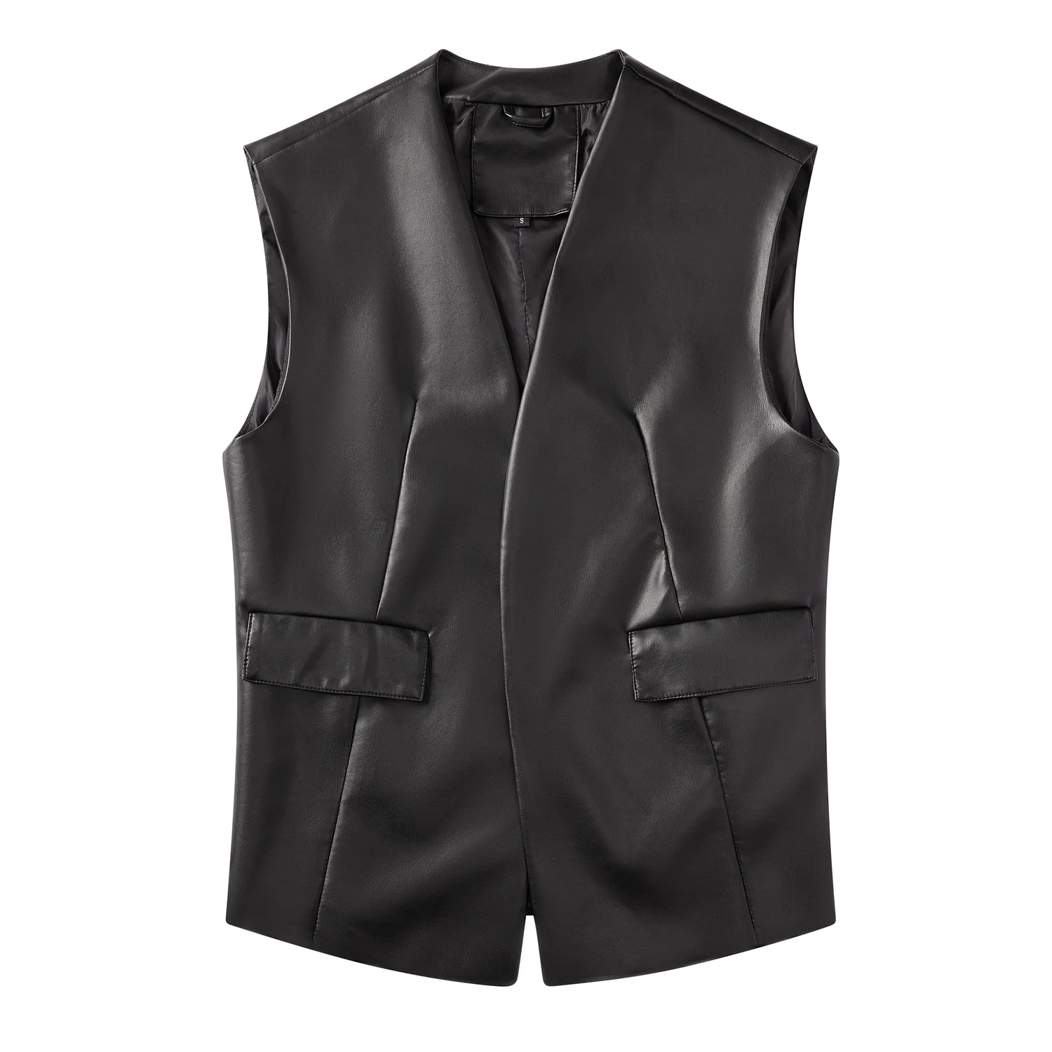 2024 sleeveless PU leather vest loose large women's Vest cardigan short coat women