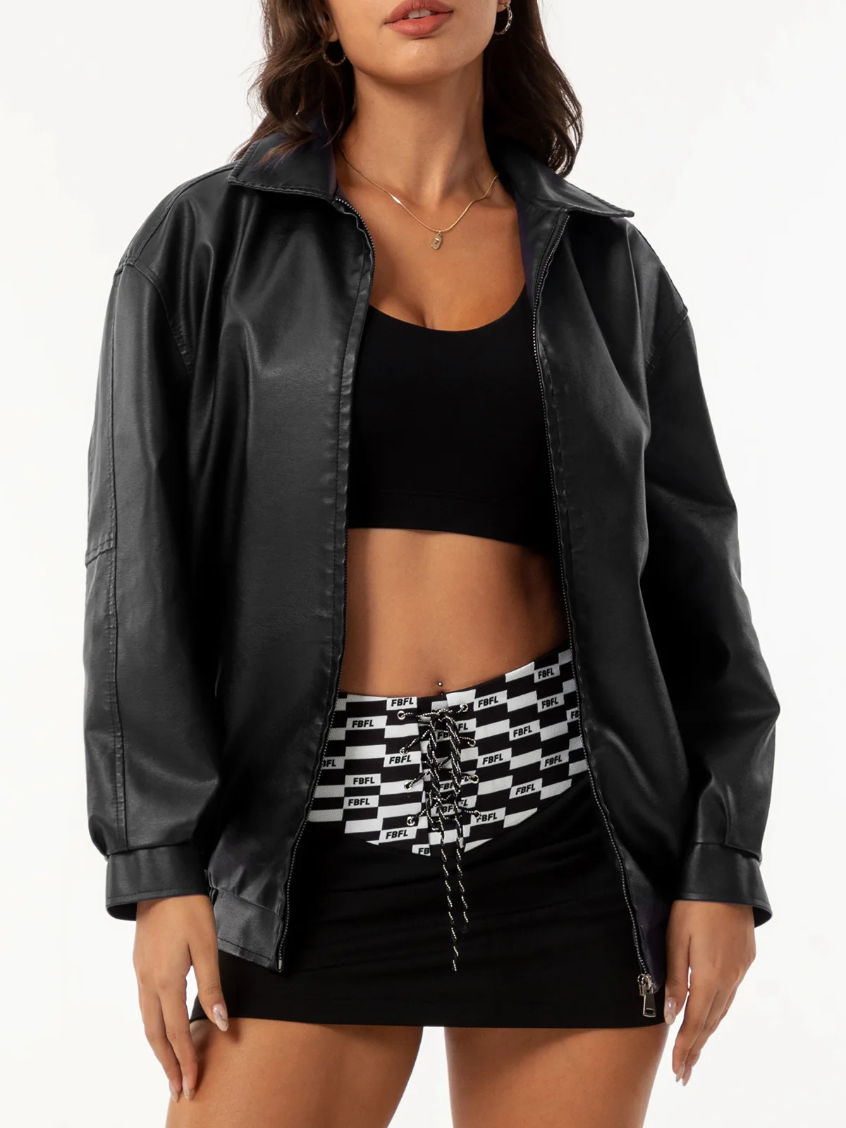 2024 Fashionable and Popular Loose fitting Leather Clothes for Women Oversize Women's Jackets Long sleeved Collar Spring