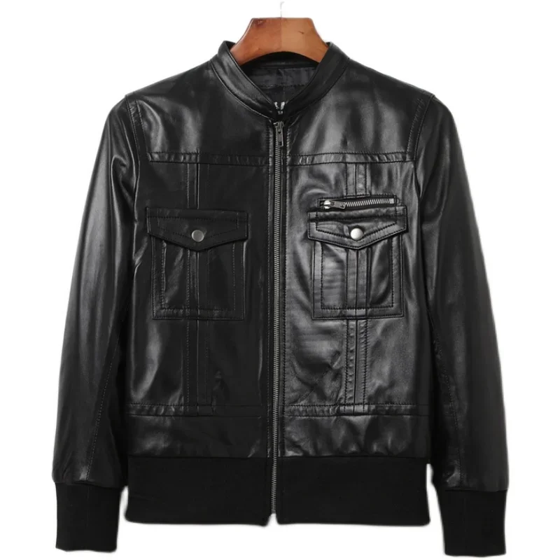Autumn Sheepskin Bomber Coat Women's Leather Jacket High Waist Slim Short Motorcycle Jacket Female Clothes Roupas Femininas FCY