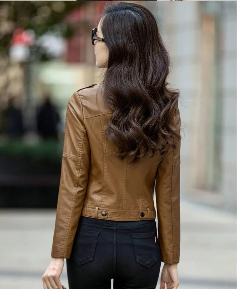 New Women Genuine Leather Jacket Autumn Winter Fashion Moto&Biker Style Outerwear Stand Collar Short Sheepskin Coat
