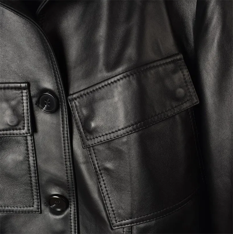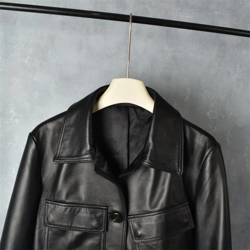 Turndown Collar genuine leather jackets for women 2023 autumn new slim fitting short pocket Solid leather jacket female Y4217