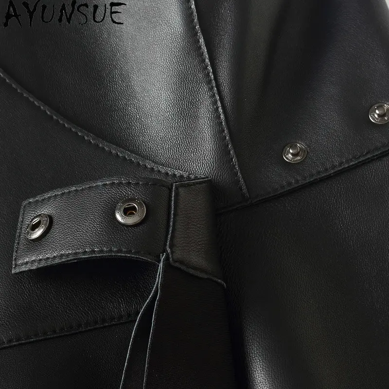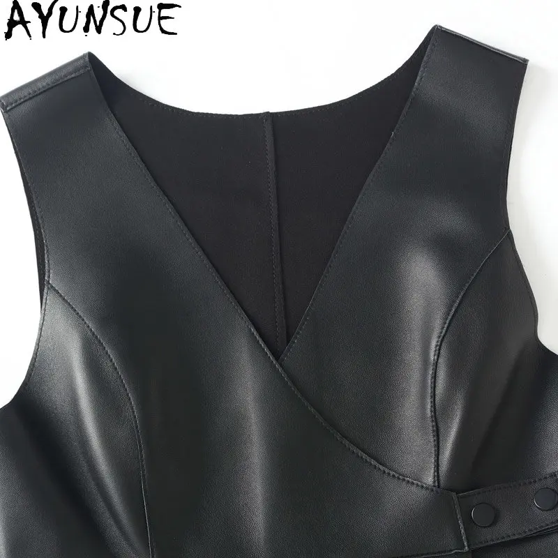 AYUNSUE Genuine Sheepskin Leather Jackets for Women 2023 Real Leather Sleeveless Jacket Women Leather Vest Slim Waistcoat Top