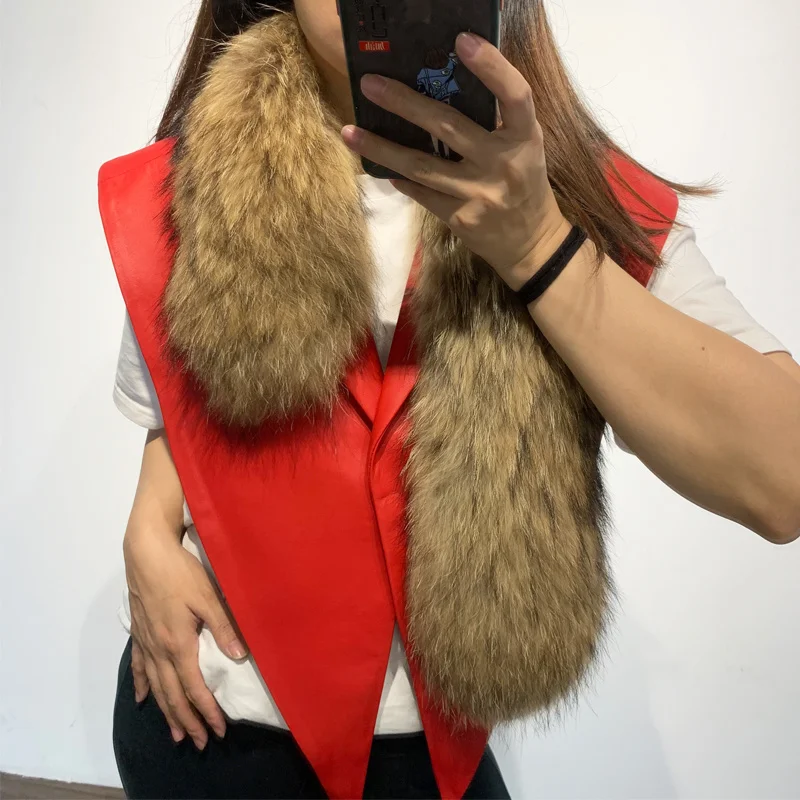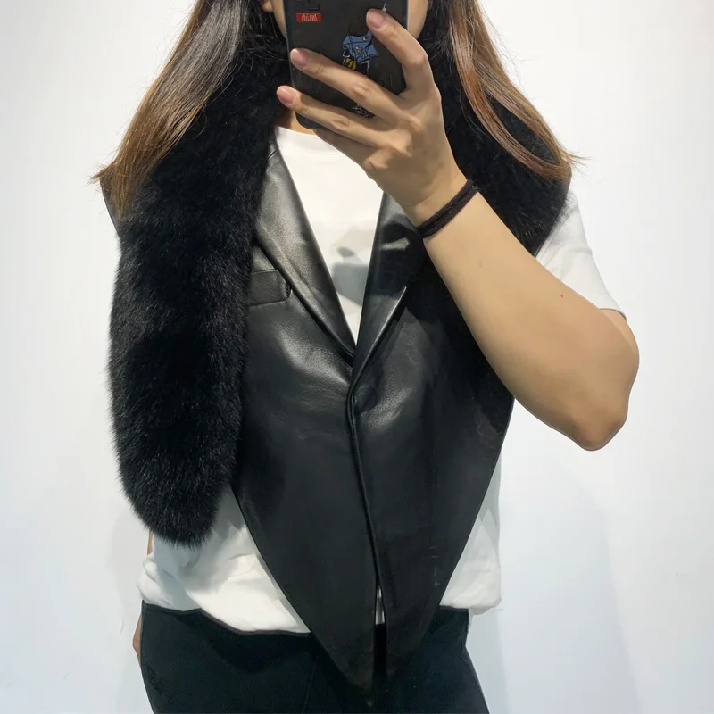 2023 Autumn New Coming Real Sheep Jacket Genuine Leather Shawl With Fur Collar