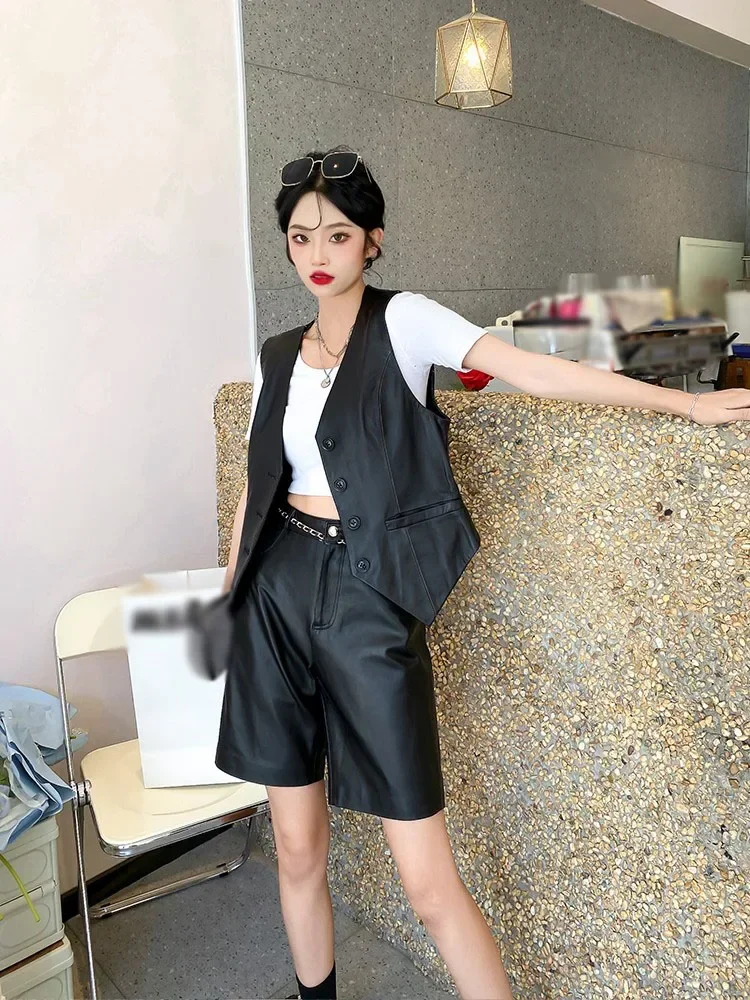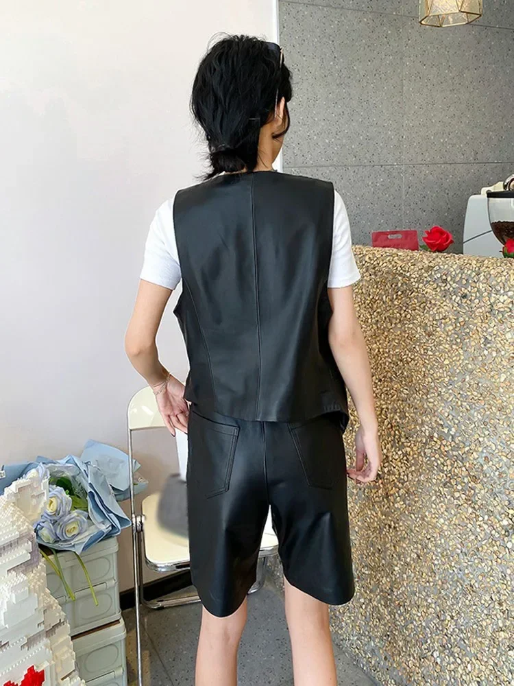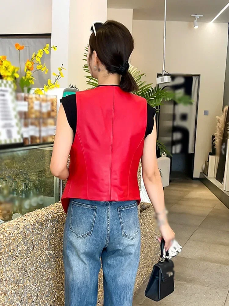 Genuine Leather Jacket Women Spring Autumn Single-breasted Leather Vest for Women V Neck Sheepskin Vest Sleeveless chaquetas