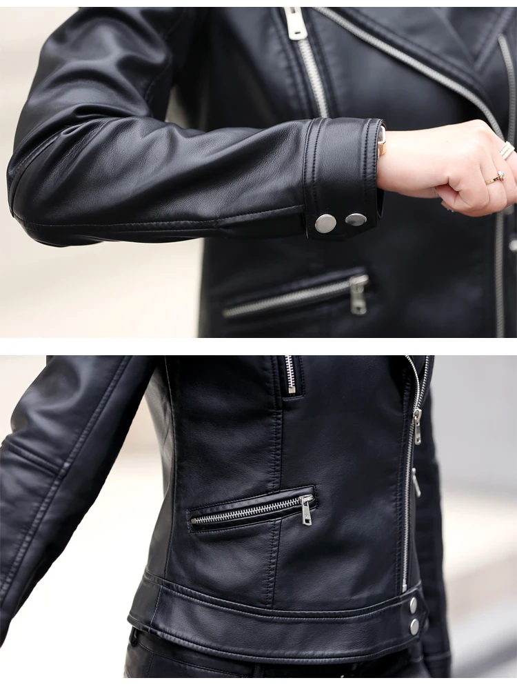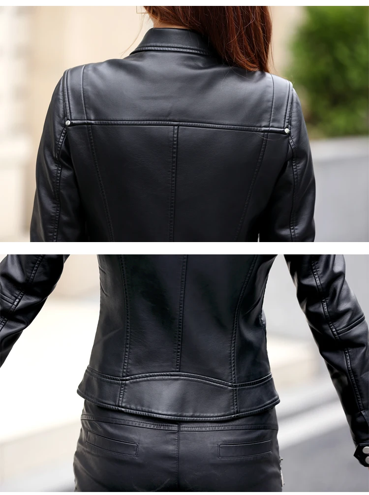 New style autumn spring clothes black wine sheep skin matte genuine leather women lady short slim style zip jacket size 5XL