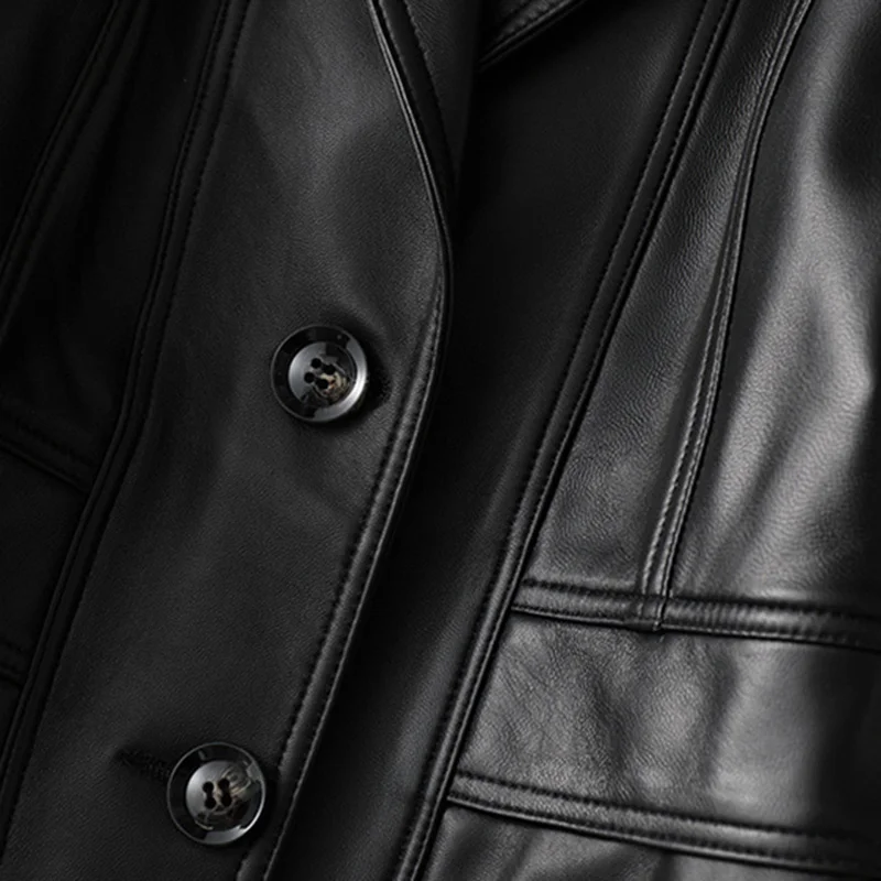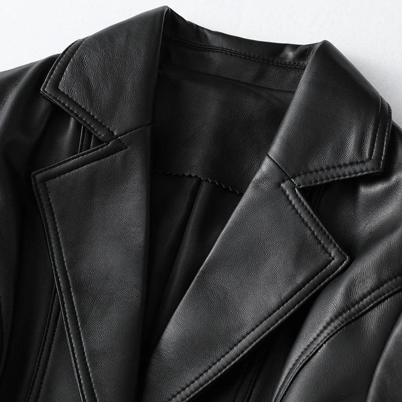 Single Women Genuine Leather Breasted Lambskin Jacket Office Lady Black Slim Real Leather Coat Short Female Fashion Clothes