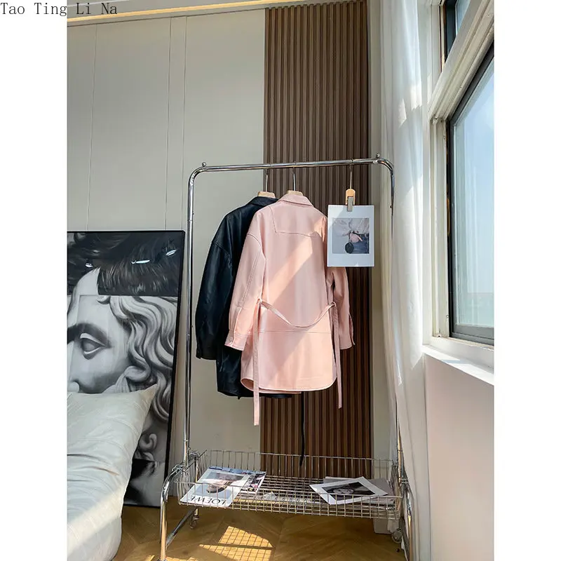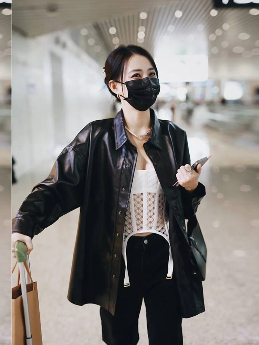 2023 Women New Spring Genuine Sheep Leather Coat Real Sheepskin Silhouette Jacket W28