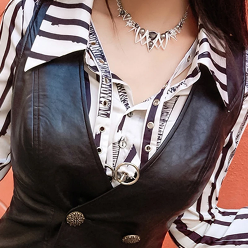 Autumn Short Black Light Soft PU Leather Vest Deep V Neck Double Breasted Crop Top Women Stylish Sleeveless Jacket 2024