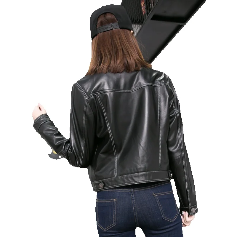 New Sheepskin Leather Jacket With Short Square Neck And Single Breasted Genuine Leather Jacket, Slim Fit And Slimming Women's Ja