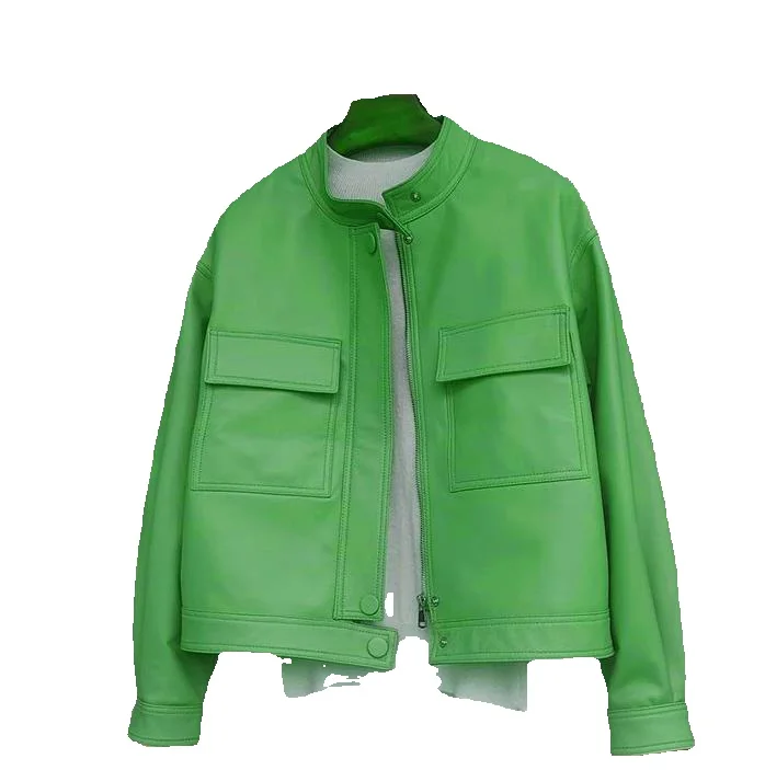 Korean Version Of Feishen Genuine Leather Jacket For Women's Short Trend Stand Up Collar Sheep Leather Jacket, Spring New Bag