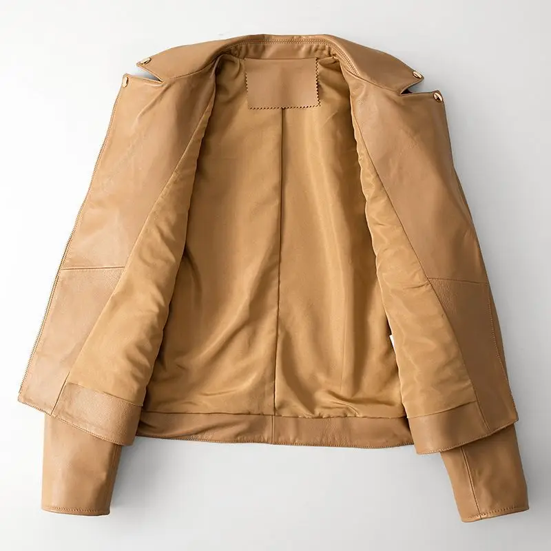 Genuine leather women's leather jacket 2023 new motorcycle style short suit collar spring jacket