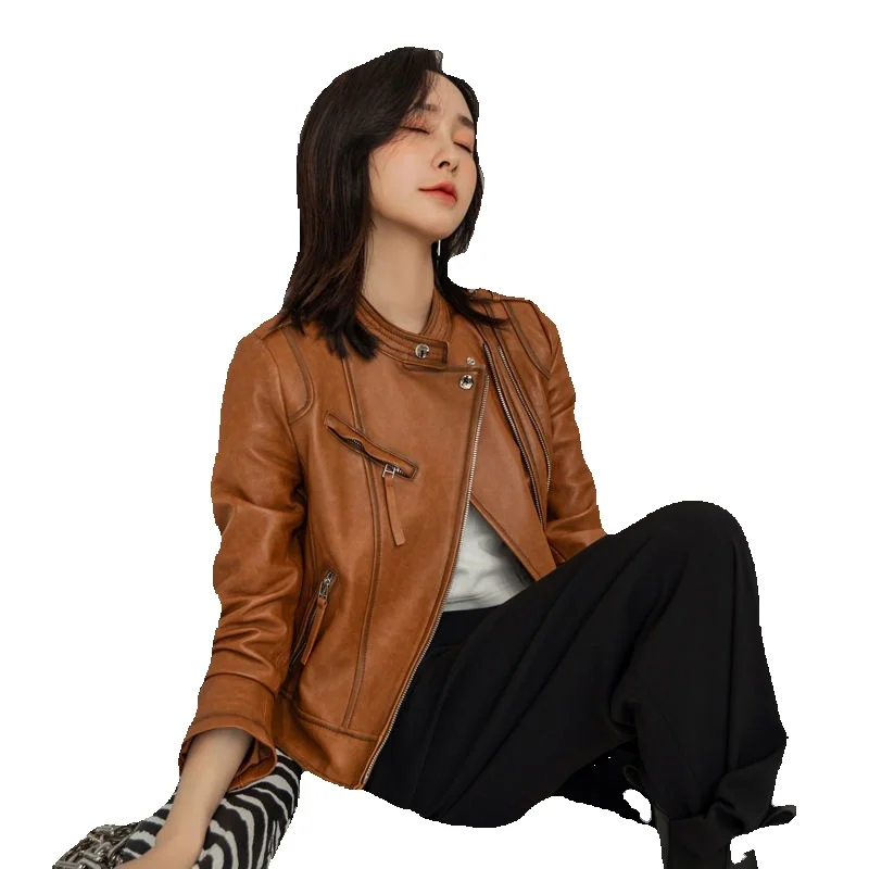Early Spring New Women's Genuine Leather Clothes, Sheepskin Slim Fit, Versatile Motorcycle Jackets, Coat Trendy