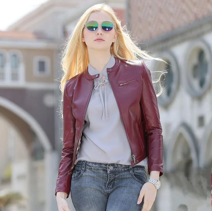 Genuine Leather Women Real Sheepskin Coat Red Black Slim Brand Short Jacket Motorcycle Ladies Autumn Clothing Size 3XL