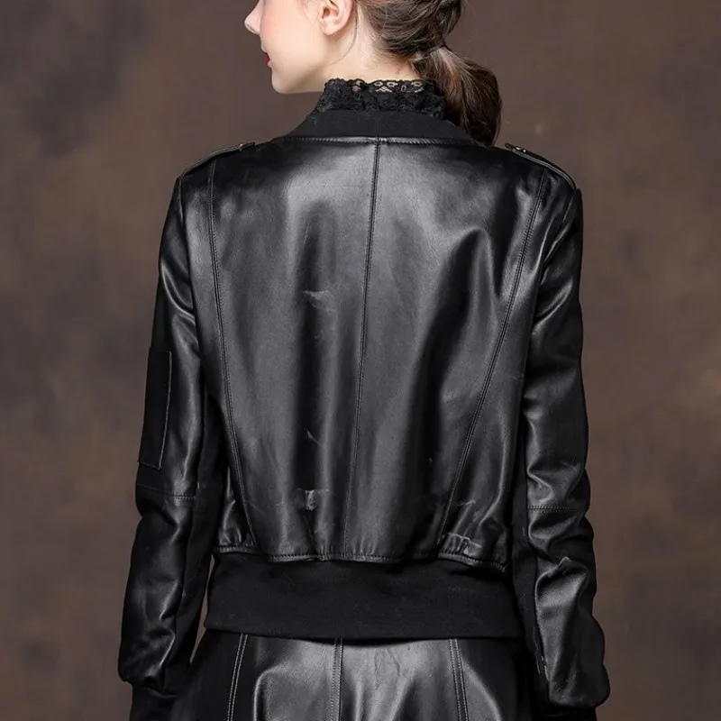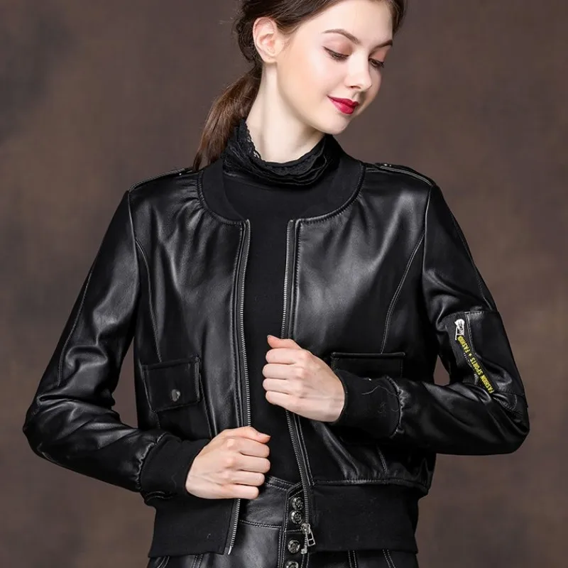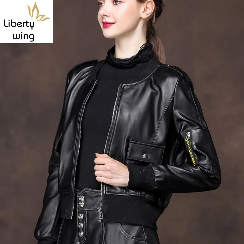 2020 New Women Sheepskin Genuine Bomber Short Style Moto Biker Female Leather Coat Slim Fit Outwear Autumn Jacket