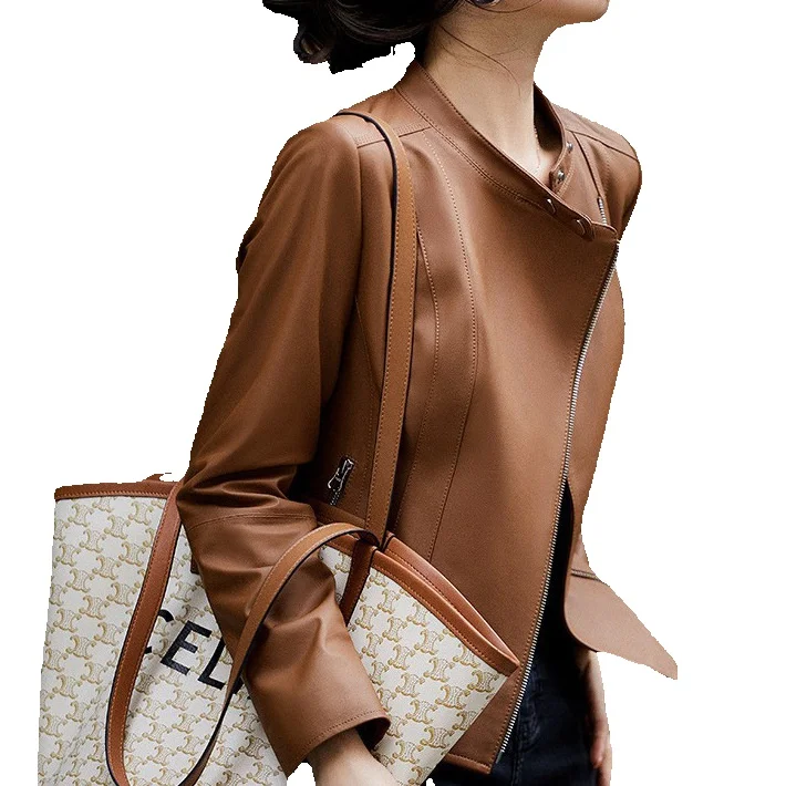 Genuine Leather Jacket For Women's Spring New Standing Collar, Fashionable Slim Fit, Slimming Sheepskin Top Coat, Versatile