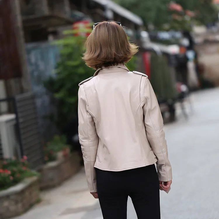 2023 Genuine Leather Jacket Women's Motorcycle Jackes Femme Short Lapel Pure Sheepskin Coats Female Clothes Spring Fall on Sale