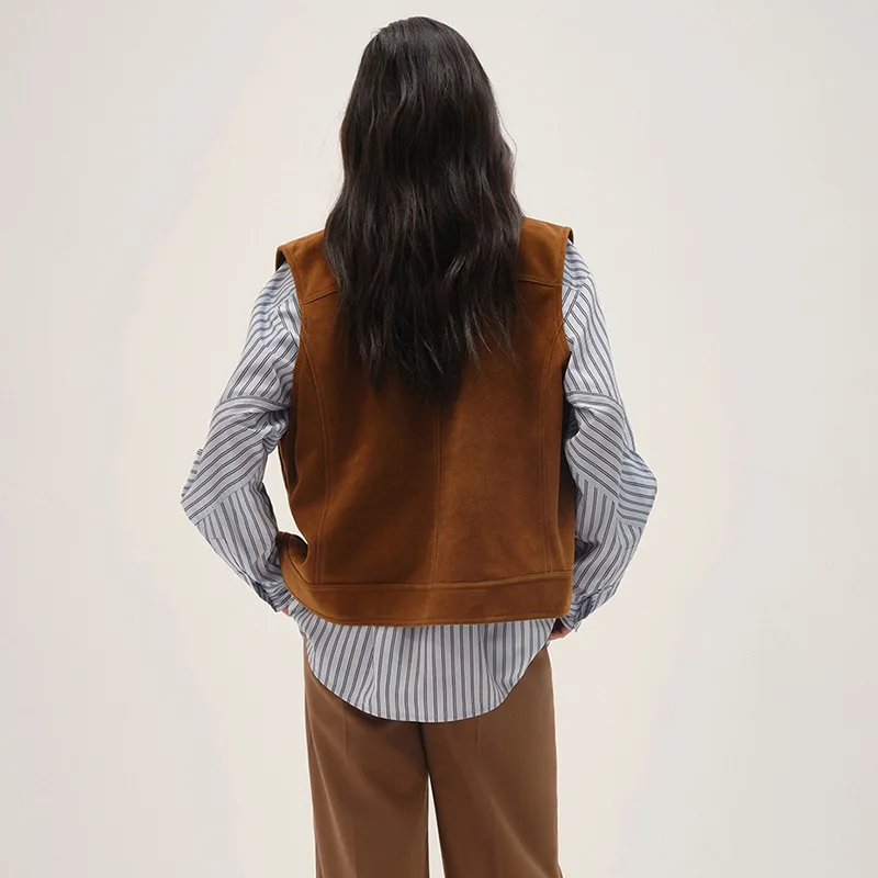 2023 Women New Kid Suede Vest Lady Fashion Vintage Waistcoat Streetwear Female Gilet TF5555