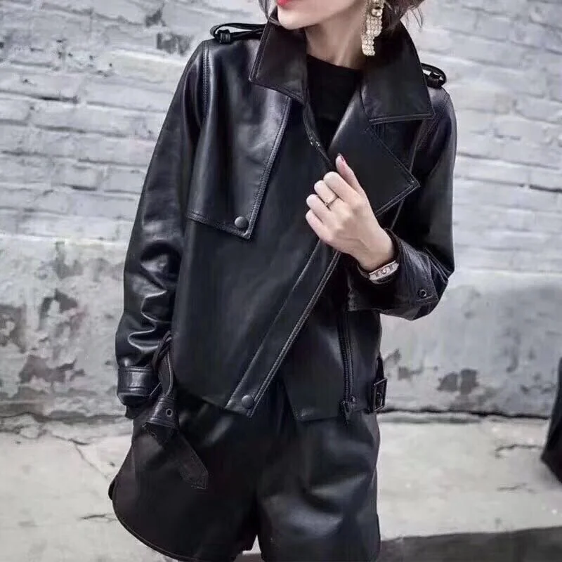 Genuine Leather Jacket Women Natural Real Sheepskin Ladies Coat New Autumn Winter Motorcycle Casual Loose Outerwear Plus Size