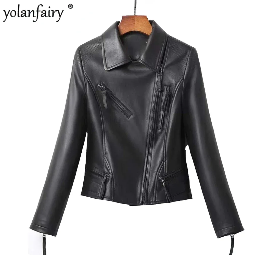 Women Genuine Sheepskin Leather Coat Women's 100% Natural Leather Jacket 2023 Motorcycle Black Short Jackets 5XL Chaqueta Mujer
