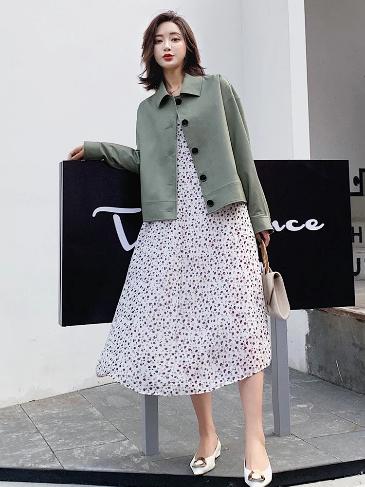 2020 Women's Sheepskin Coat Genuine Leather Jacket Women Korean Short Spring Autumn Real Leather Jackets B12D01168 KJ6022