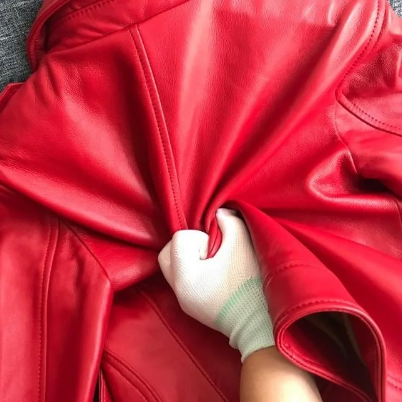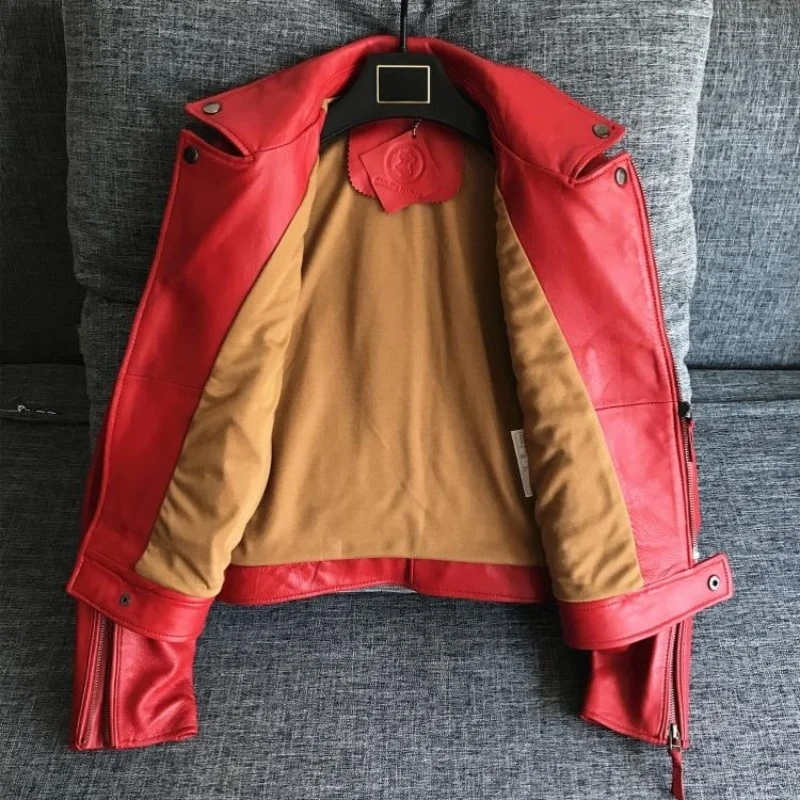 100% Black Sheepskin Red Coat Woman Korean Plus Size Real Leather Casual Jacket Biker Streetwear Casacos De Inverno Feminino
