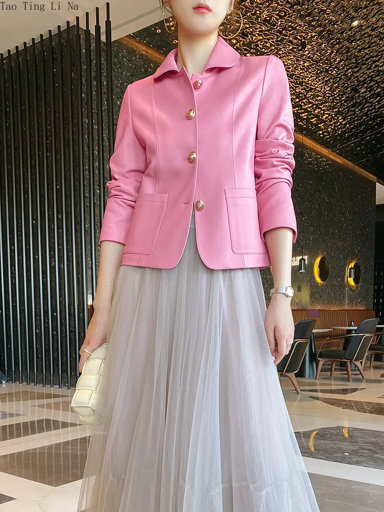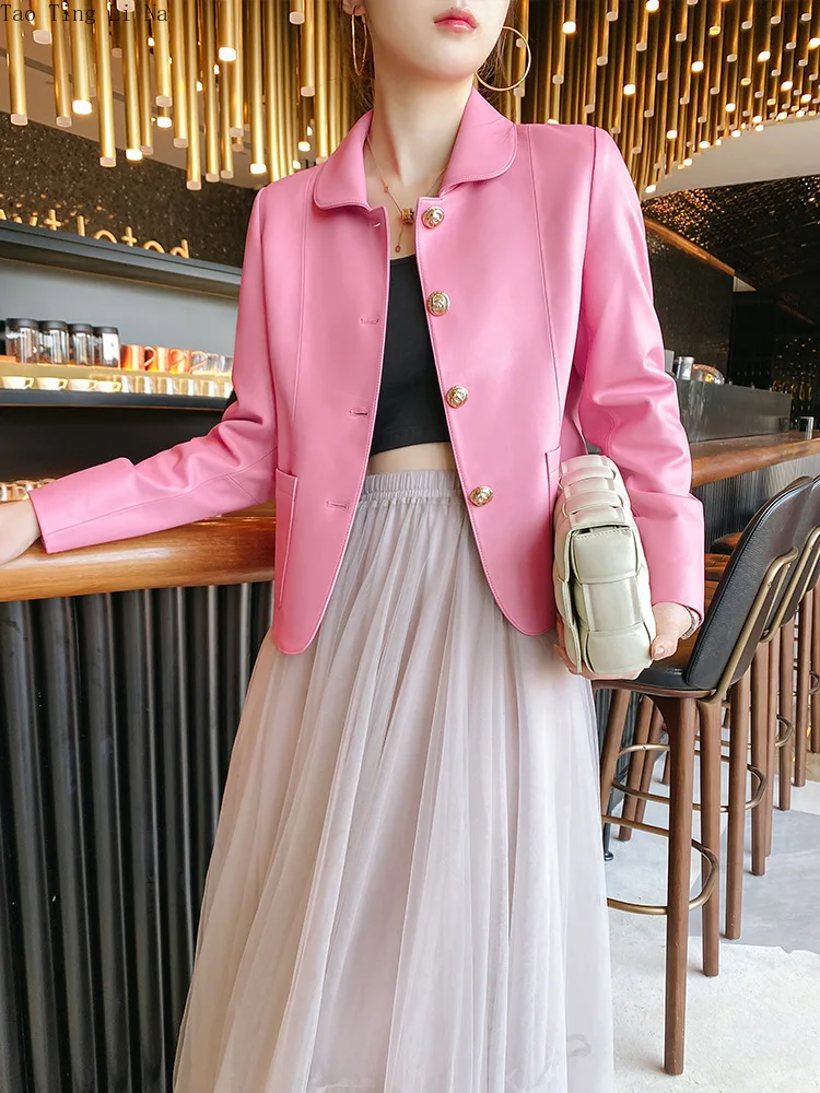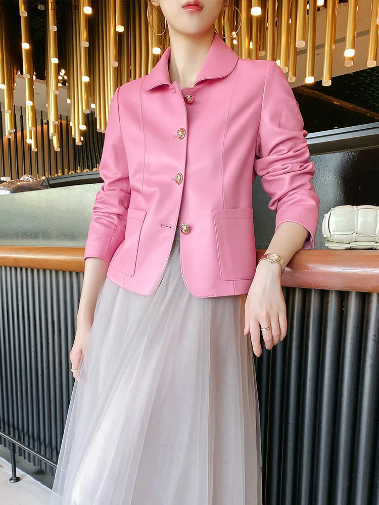 2022 New First Layer Sheepskin Leather Jacket Women Motorcycle Leather Jacket S19