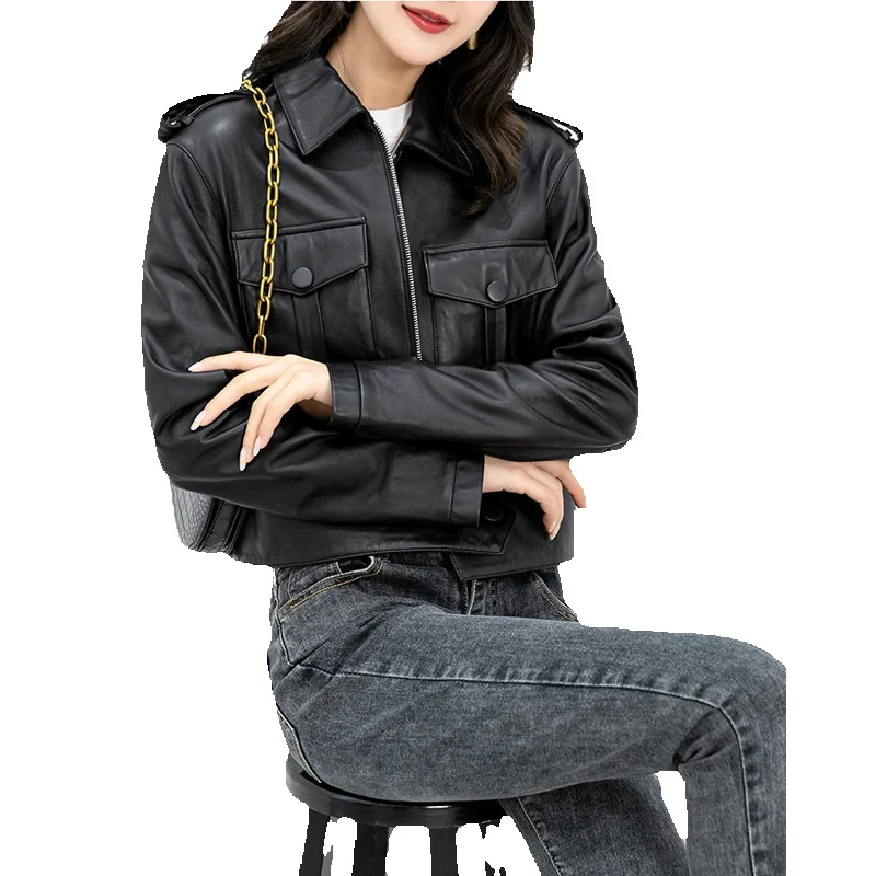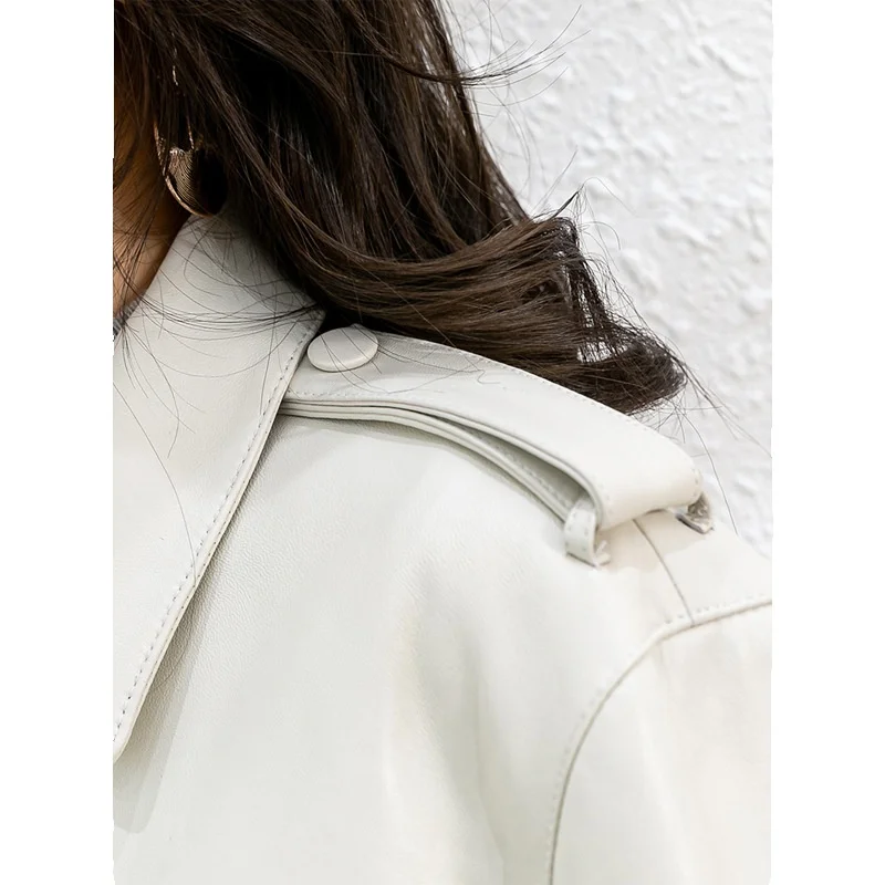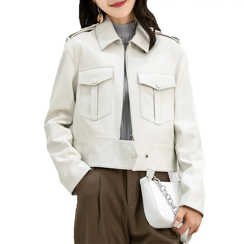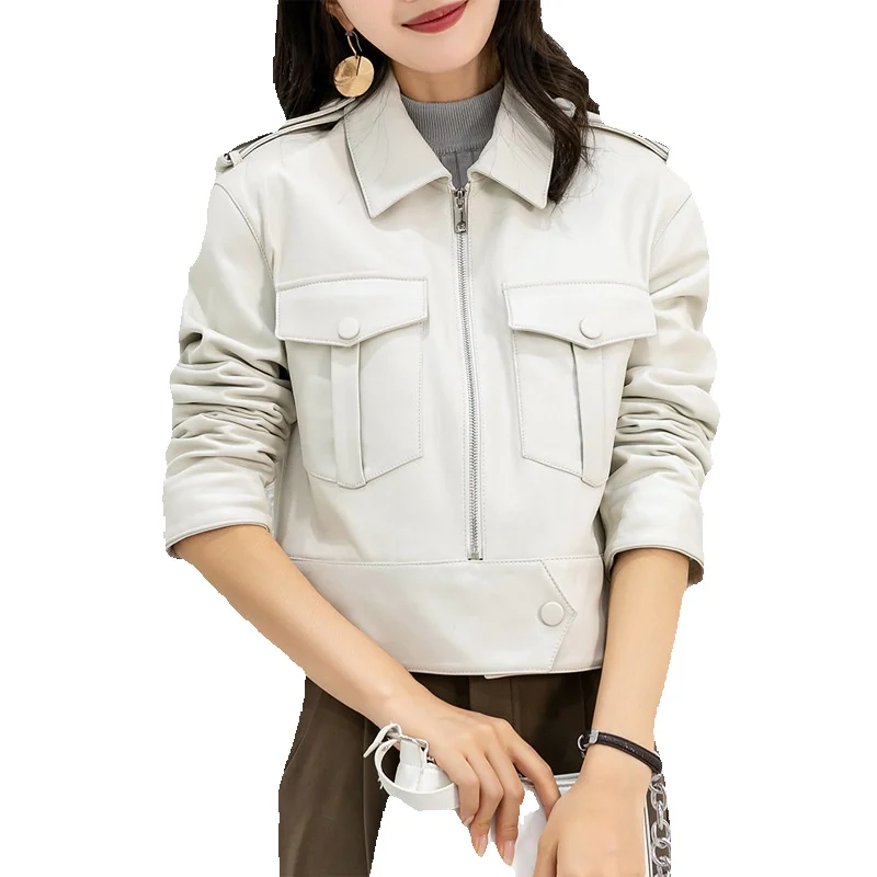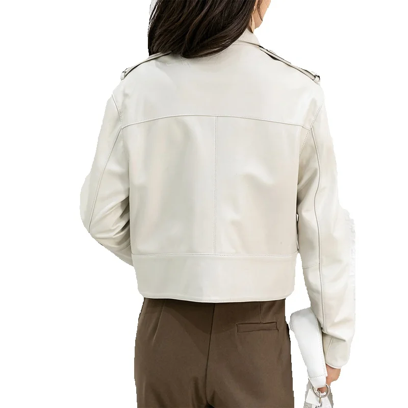 New Sheepskin Genuine Leather Jacket With White Sex Bag Motorcycle Jacket