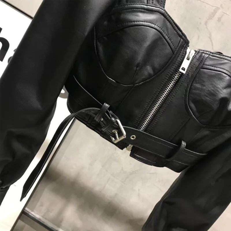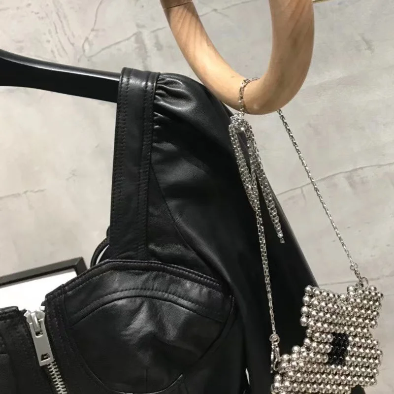 Name | Ladies' Sexy Leather Jacket Open Collar Women's Real Lambskin Top |
