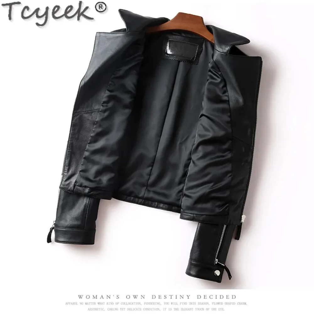 Real Tcyeek Leather Jacket Fashion 's Motocycle Jackets Black Brown Sheepskin Coat for Women Clothing Spring Autumn