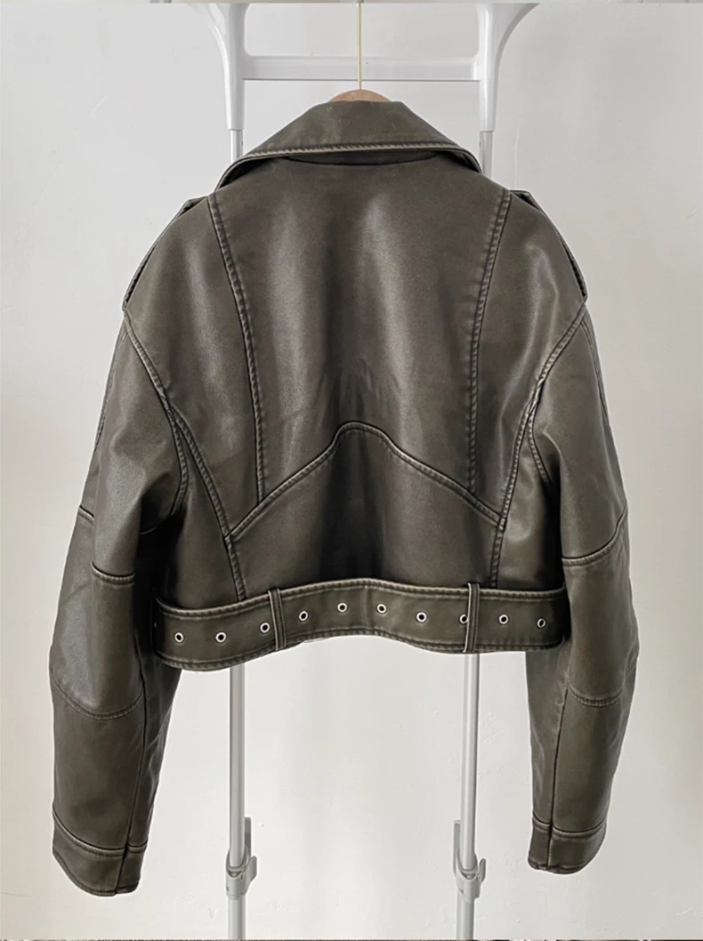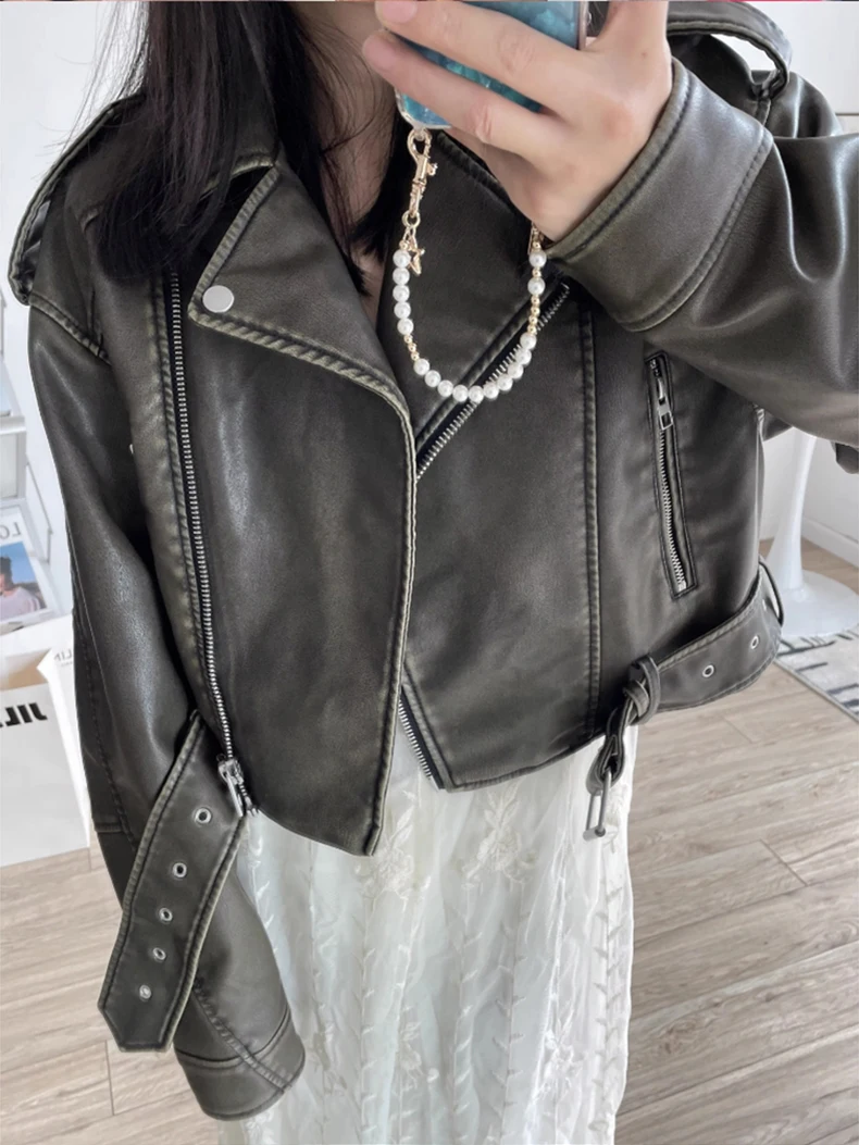 2024 Spring Autumn Cool Short Loose Pu Leather Biker Jacket Women Zipper Blet Retro Female European Fashion Streetwear