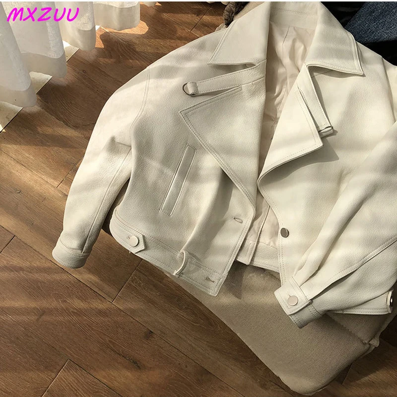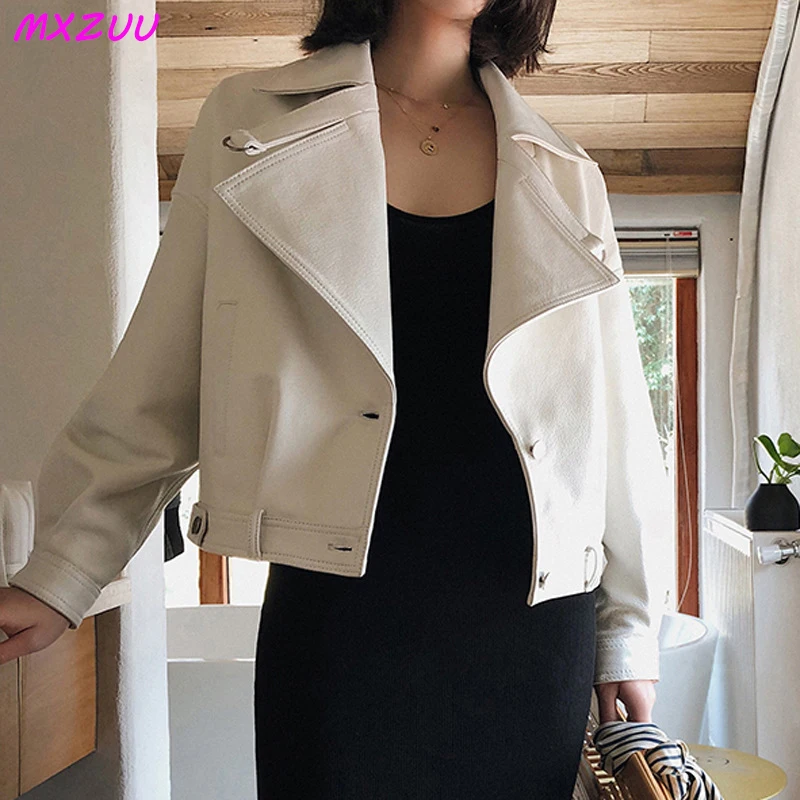 Winter Coat Women Goatskin Deer Pattern Loose Profile Chaqueta Mujer Red/Black/White Genuine Leather Short Lapel Manteau Trendy
