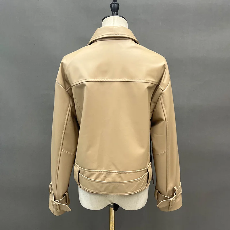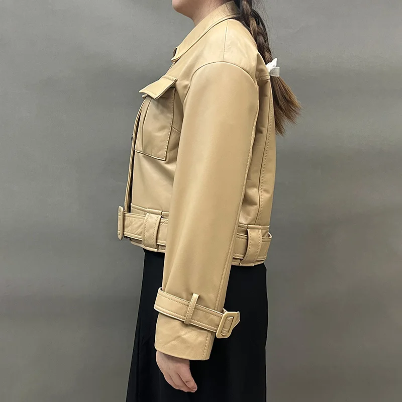 2023 New Genuine Sheepskin Leather Jacket Lady Fashion Moto Crop Jacket Women Short Coat Real Sheepskin FG5772