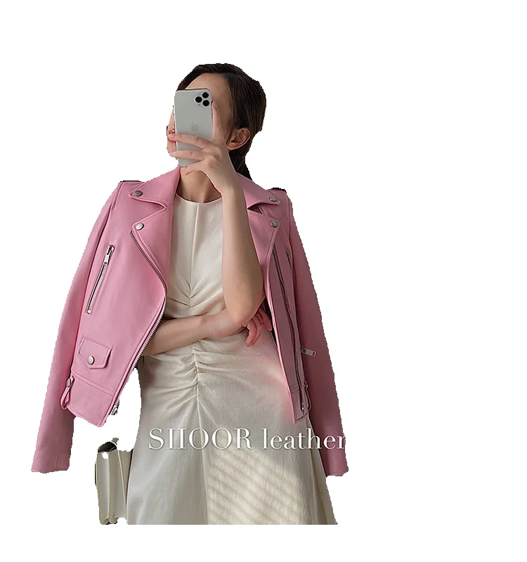 New Sheepskin Jacket With Genuine Leather Coat For Women's Motorcycle Short Style Slimming