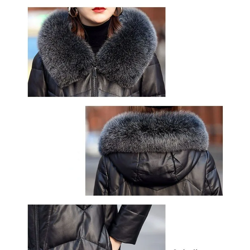 2023 Autumn Winter New Women Mid Length Genuine Sheepskin Leather Coat Fox Real Fur Collar Fur Collar Coat with Thickened Jacket