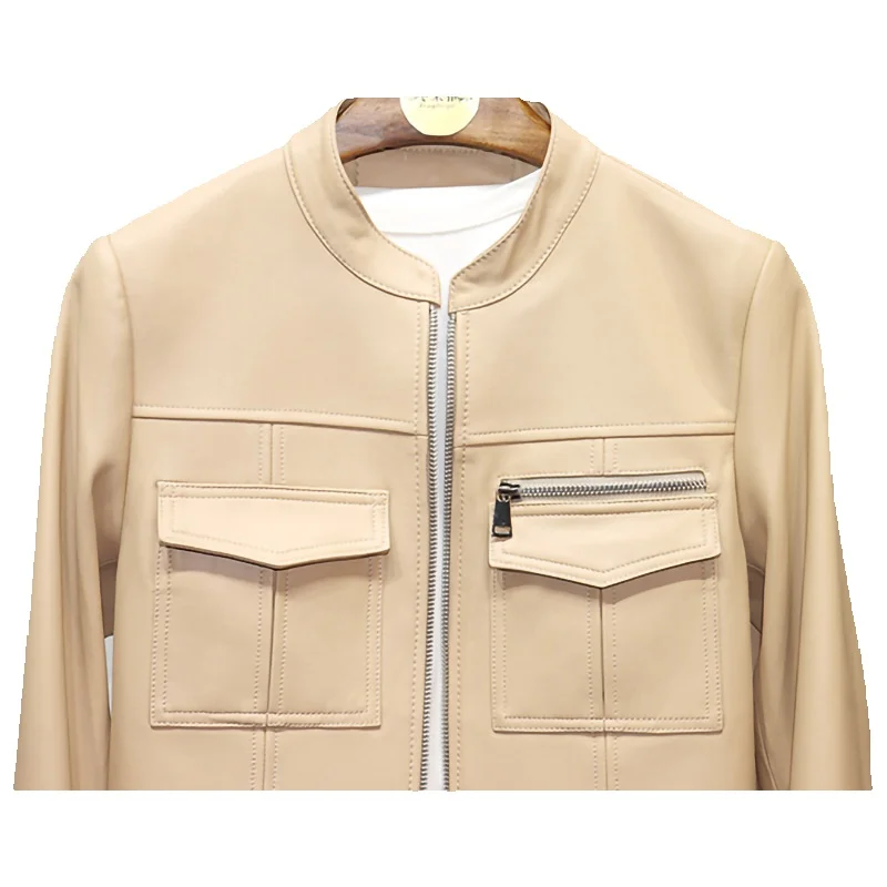New Genuine Leather Jacket, Women's Sheepskin Jacket, Trendy Slim Fit Stand Up Collar, Short Korean Leather Jacket