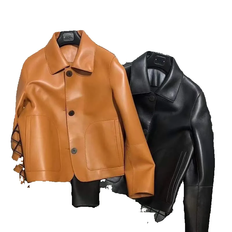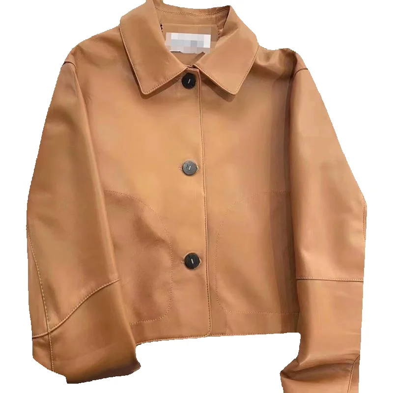 Slim Fit Genuine Leather Jacket For Women's Spring New Sheepskin Jacket With Square Neck Short Jacket